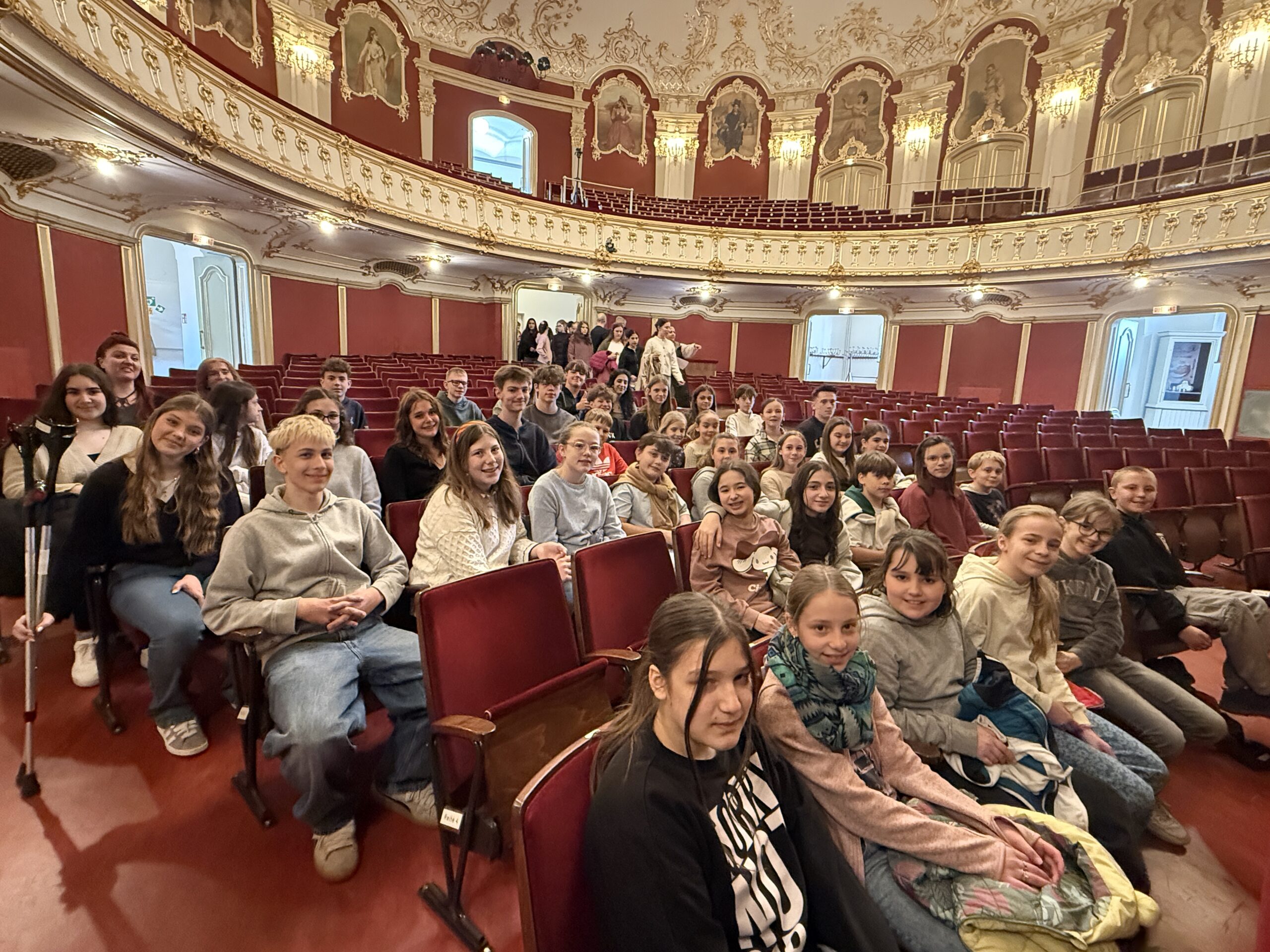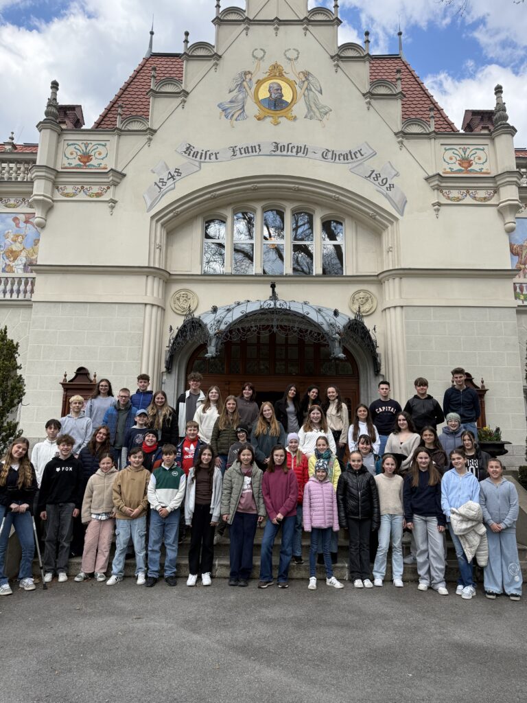 Am 22. April 2026 besuchten die Klassen 1a und 4a am Vormittag das Stadttheater Berndorf und sahen „Alice im Wunderland“ in einer neuen, frischen Version.