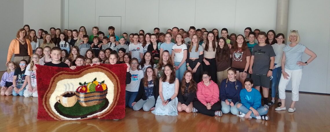 Im Rahmen eines jahrgangsübergreifenden Kunstprojektes knüpften die Schülerinnen und Schüler unter der Leitung von Frau Fachlehrerin Lang einen 100×150 cm …