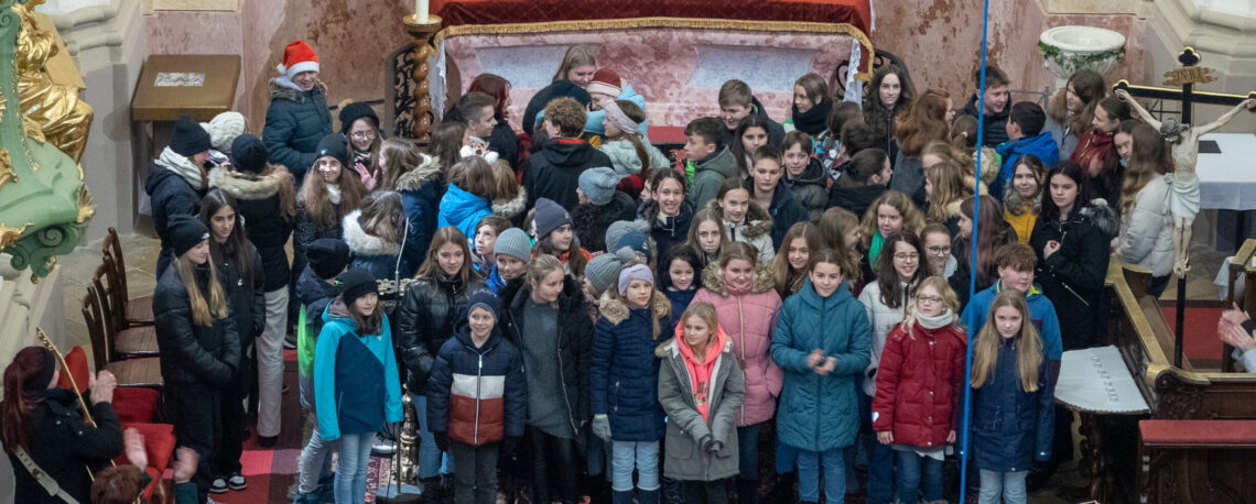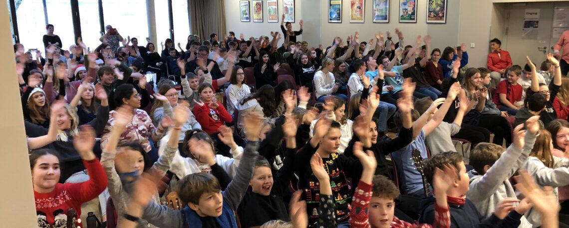 Am letzten Schultag 2022 sind wir alle noch einmal zusammengekommen, um gemeinsam Weihnachten zu feiern. Nicht nur die Musikklassen sangen, …