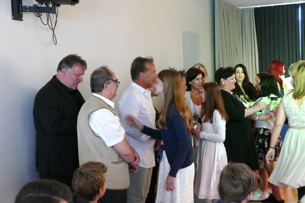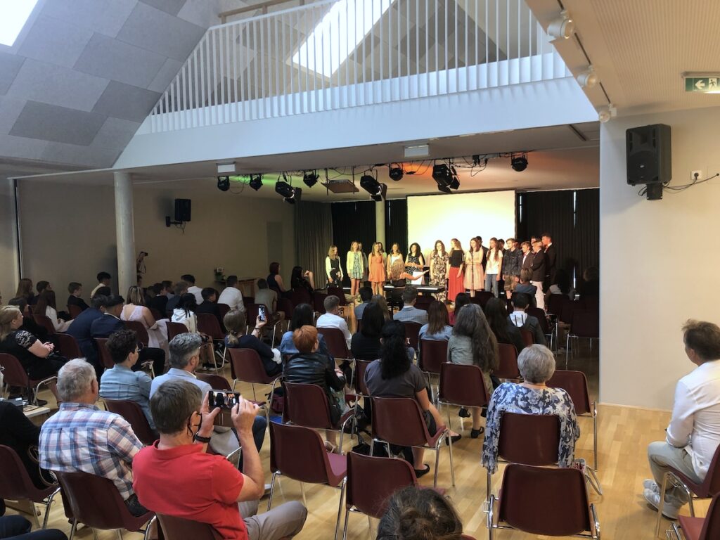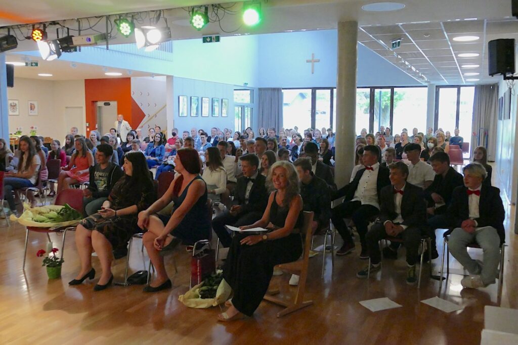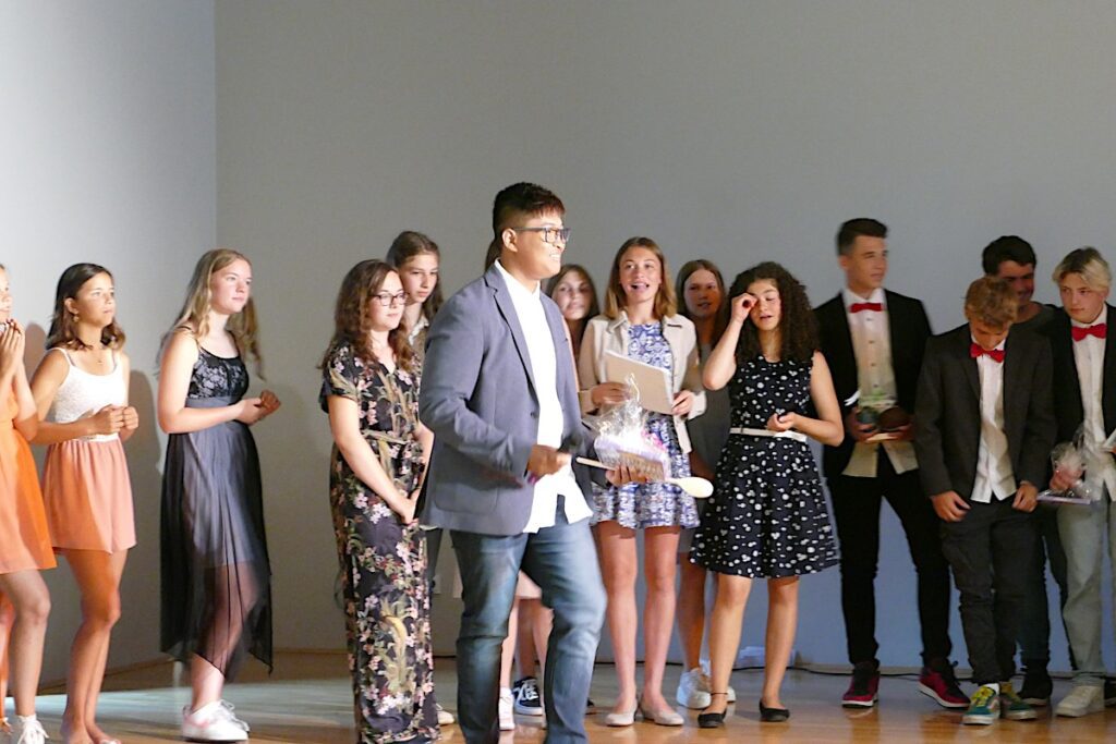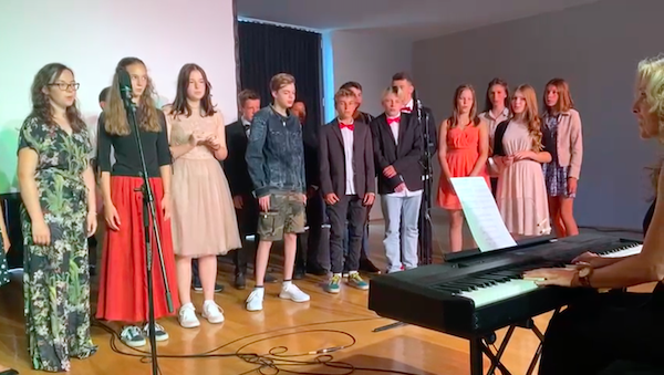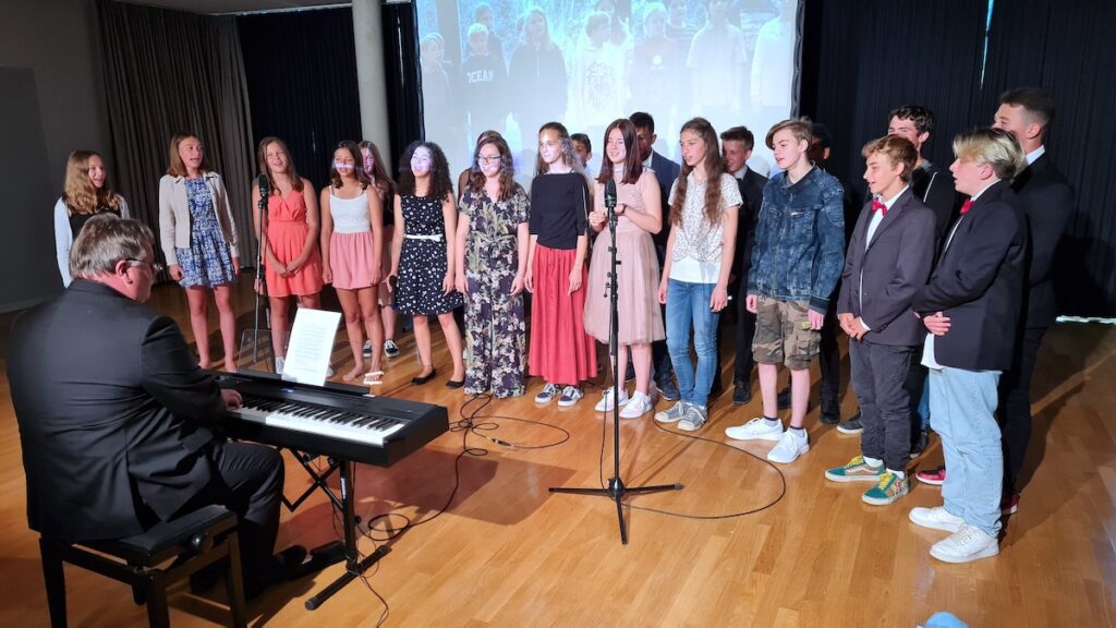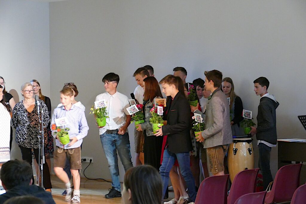 In kleinem Rahmen führten die Schülerinnen und Schüler der 4. Klassen durch das Programm. Sie präsentierten uns ihren Werdegang während der letzten 4 Jahre, zeigten was sie gelernt haben und unterhielten uns mit dem einen oder anderen Schwank ihrer Schulzeit. Für die großartige musikalische Untermalung sorgte dabei wie gewohnt die Musikklasse, die uns anhand ihres ersten, bei uns gesungen Liedes „Duff, Daff, Dei“, sehr eindrucksvoll ihren Fortschritt zeigen konnten.