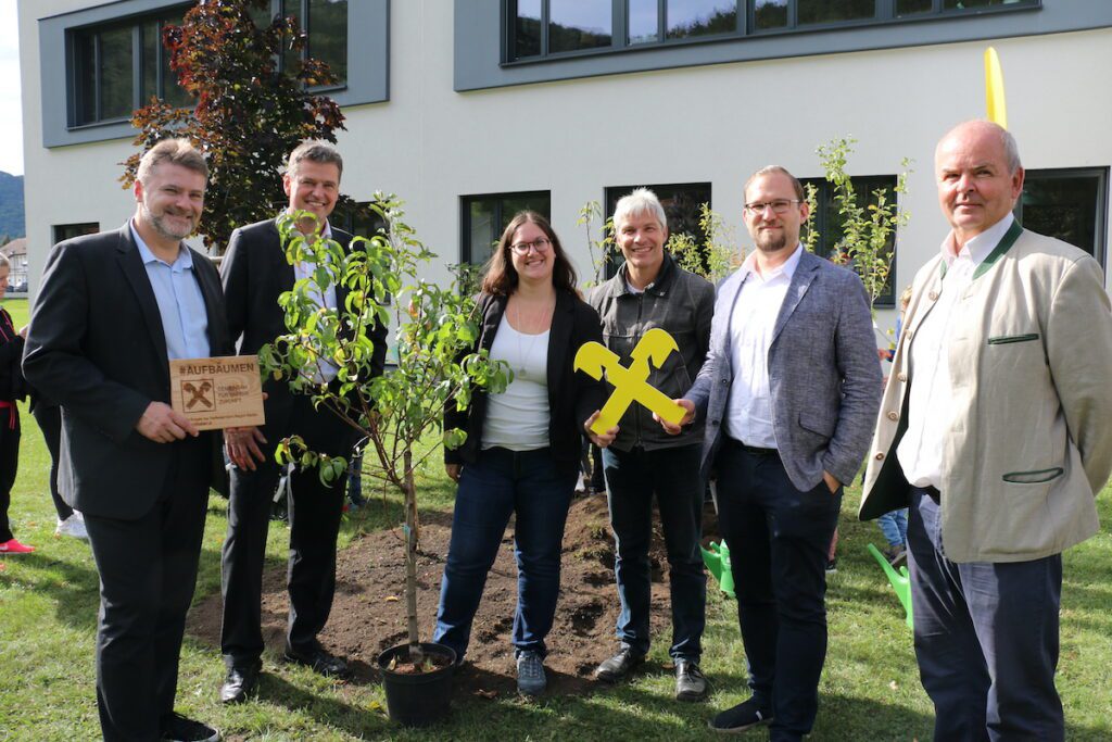 Die Mittelschule in Weissenbach ist nicht nur für seine großartigen Erfolge im Bereich der Musik bekannt, sondern hat seit einigen Jahren auch einen schulautonom gesetzten Schwerpunkt in Naturwissenschaften und Technik für jene Schüler, die nicht den Musikzweig besuchen wollen. Nun hat man neben dem Gemüsegarten Bäume gepflanzt. Dank der Unterstützung der Raiffeisenbank Weissenbach kann die Schule das Projekt Baumschule umsetzen und so etwas für das Klima tun! Die Laub- und Obstbäume, eben von dem Bankinstitut finanziert, wurden auf dem Schulgelände gepflanzt, werden von den Kindern in Zukunft gepflegt und in einigen Jahren schließlich im Gemeindegebiet von Weissenbach ausgepflanzt werden.
