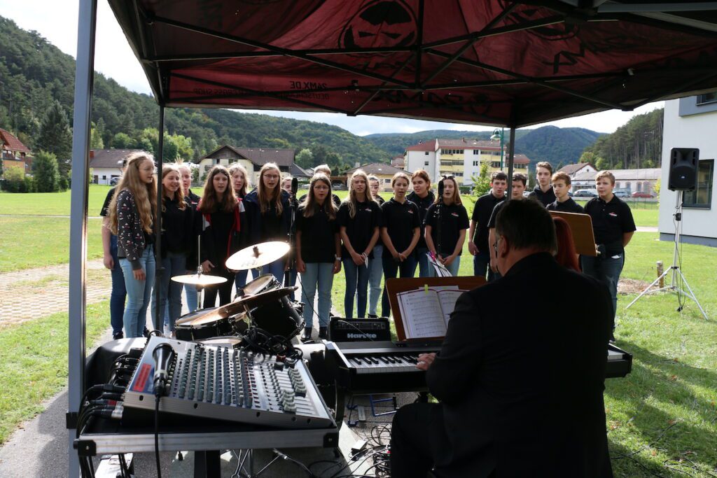 Im Rahmen einer kleinen Feier wurde das Projekt in Anwesenheit der Raiffeisen Region Baden Direktoren Eduard Kocher und Hermann Weiszbart, des Bankstellenleiters Stefan Hacker, des Vizebürgermeisters von Weissenbach Josef Ungerböck und des Umweltgemeinderates Gerhard Leutgeb sowie des stellvertretenden Direktors der Schule Andreas Bartl der Öffentlichkeit präsentiert. Die musikalische Umrahmung oblag der 4a-Musikklasse der Musikmittelschule, die dem Thema entsprechend passende Lieder über Bäume vortrug.