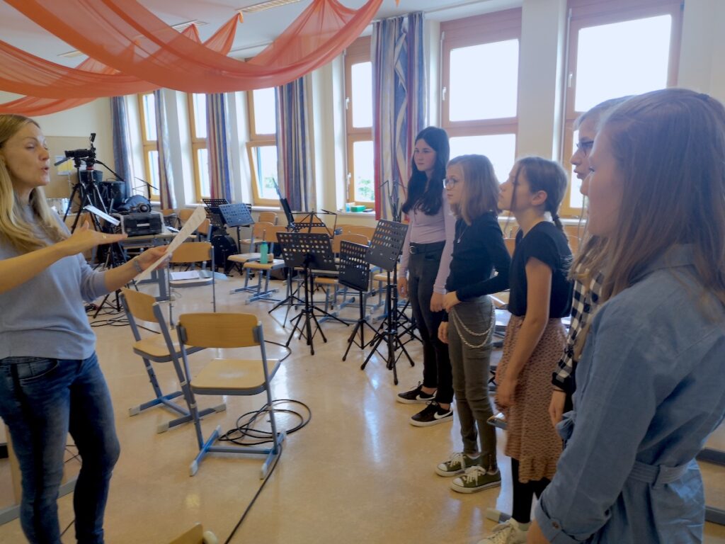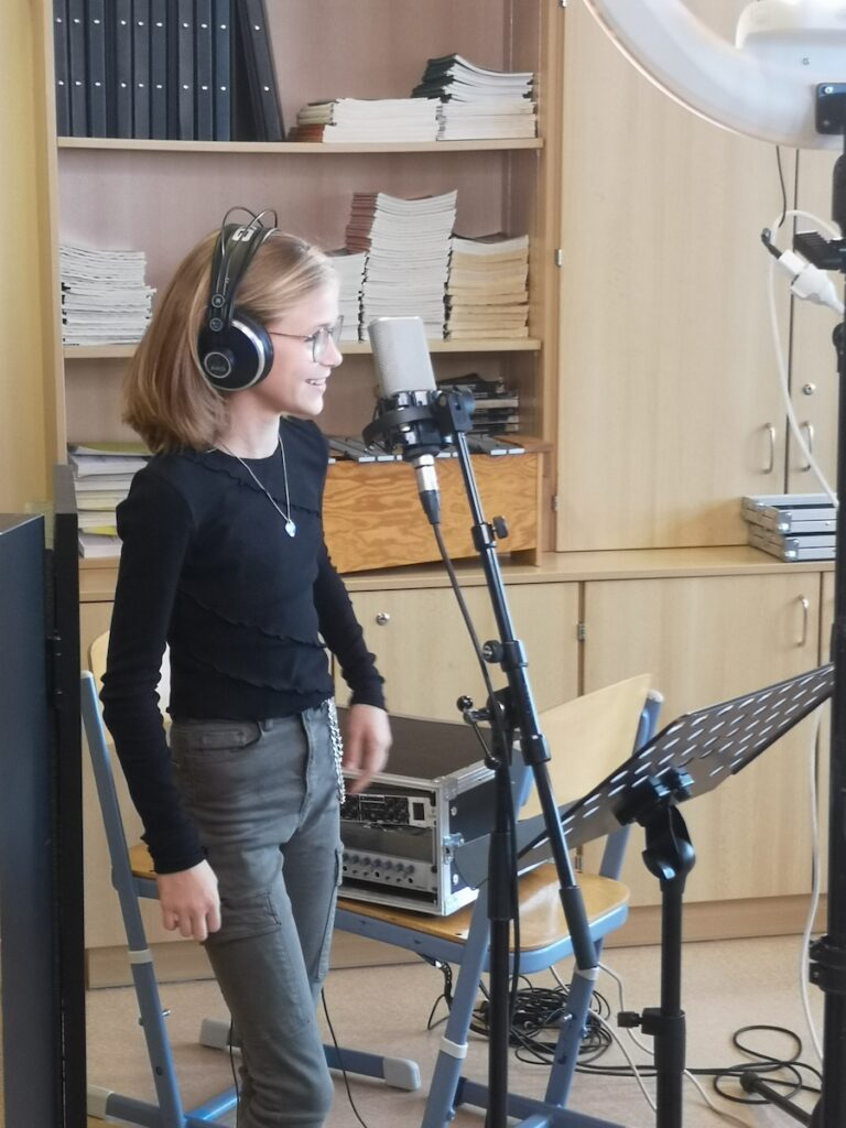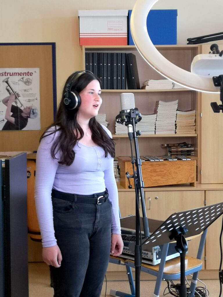 In einem Klassen- und später Schulcasting wurden unsere besten Sängerinnen und Sänger der Musikklassen vom Musiklehrerteam ausgewählt. Darauf folgte dann der Besuch in der Musikmittelschule Haag zum Aufnahmetermin mit professioneller Ton- und Videotechnik.