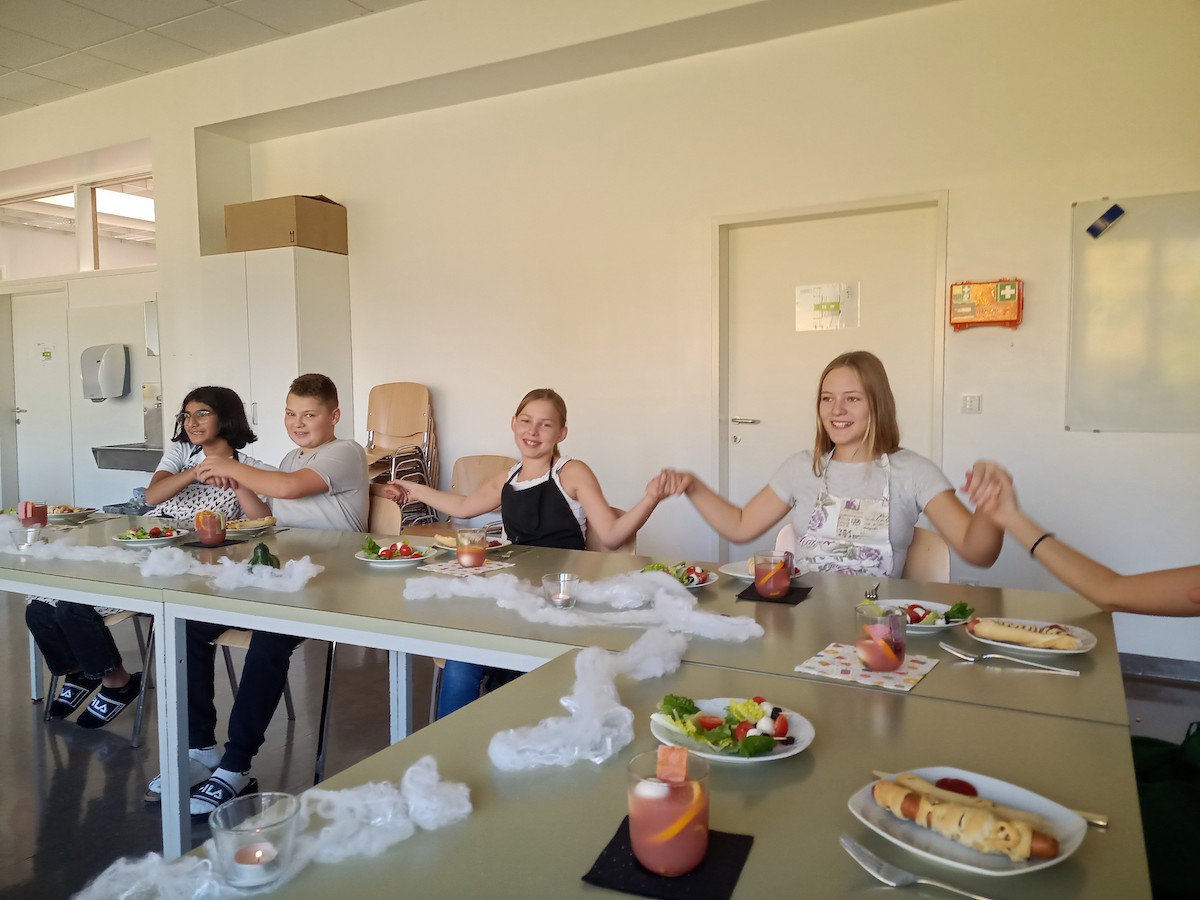 Die Schülerinnen und Schüler der 3a, 3b und 3c veranstalteten heuer ein gruseliges Halloween Special im Unterrichtsfach Ernährung und Haushalt. Und das natürlich fächerübergreifend mit Englisch. 😊 Es gab schaurig geschnitzten Kürbis à la Jack O’Lantern, Mozzarella Eyes Caprese, Mummy Sausages, Chocolate Spider Muffins und Frozen Hands Punch.