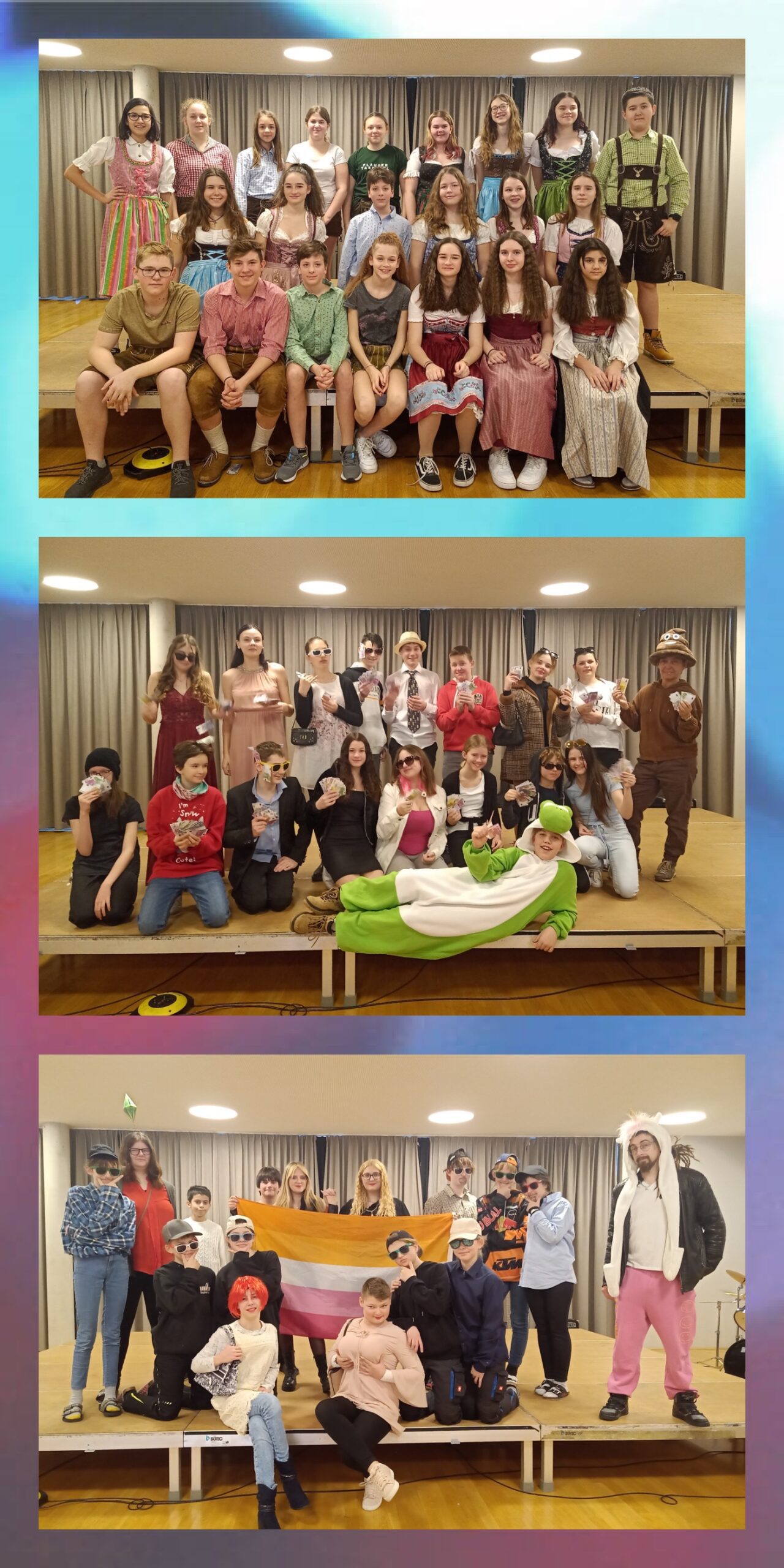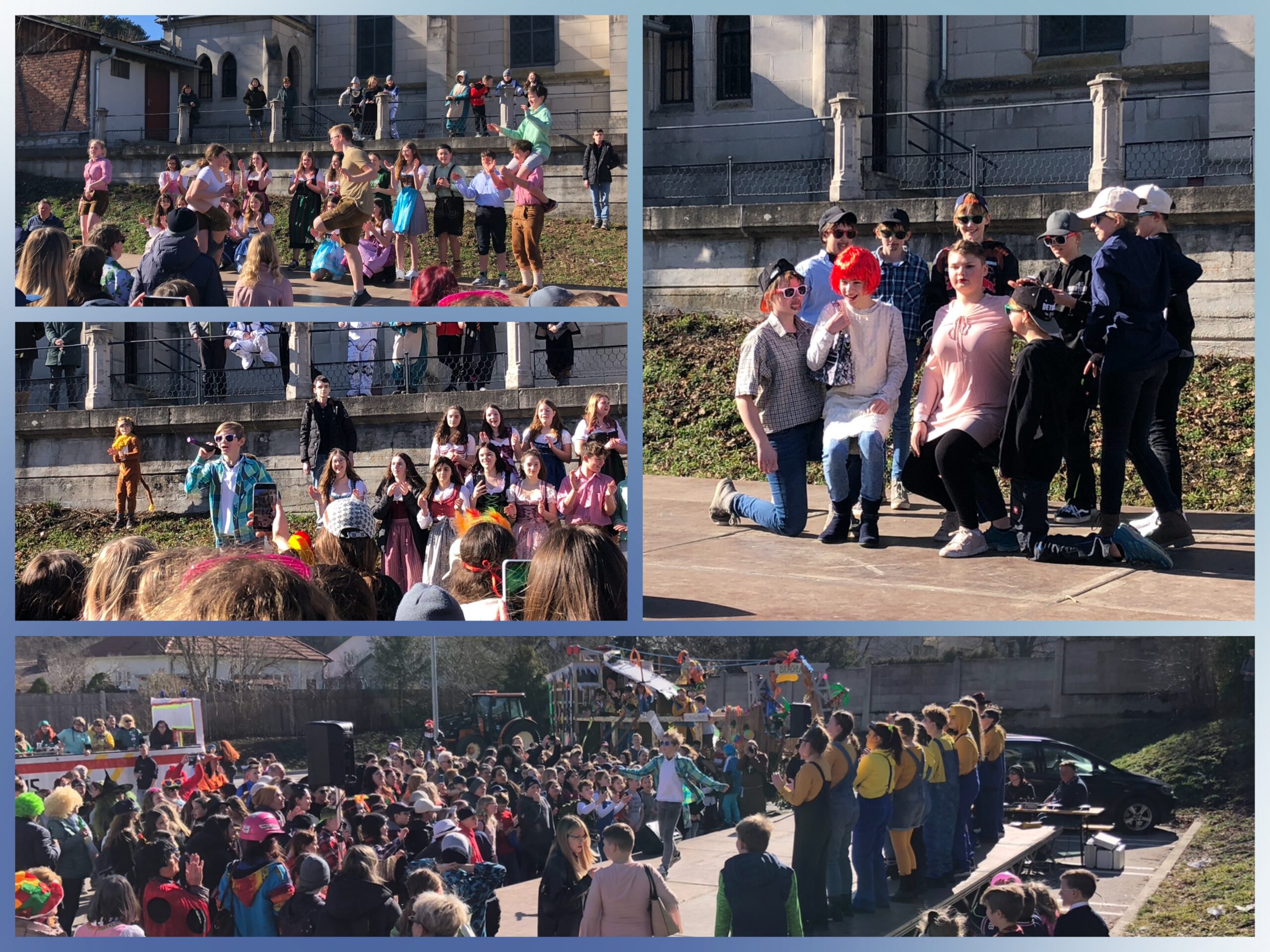 Den Fasching-Dienstag gestalteten wir wieder mit vielen lustigen Beiträgen in der Schule. Dabei konnte man Playbackperformances, Tanzvorführungen, Chorpräsentationen und Live-Solo-Songs miterleben. Die besten vier Darbietungen wurden dann auf der Bühne beim Gemeindefasching in Weissenbach dem anwesenden Publikum gezeigt. Mit dabei waren Volkstänzer und Schuhplattler, Tänzerinnen und Tänzer mit großartigen Choreographien, die „Village People“ mit „YMCA“ und vor allem Niklas Leutgeb, der eine unglaublich tolle Darstellung als Josh mit dem Lied „Expresso & Tschianti“, live gesungen, lieferte. Da durfte eine Zugabe nicht fehlen.