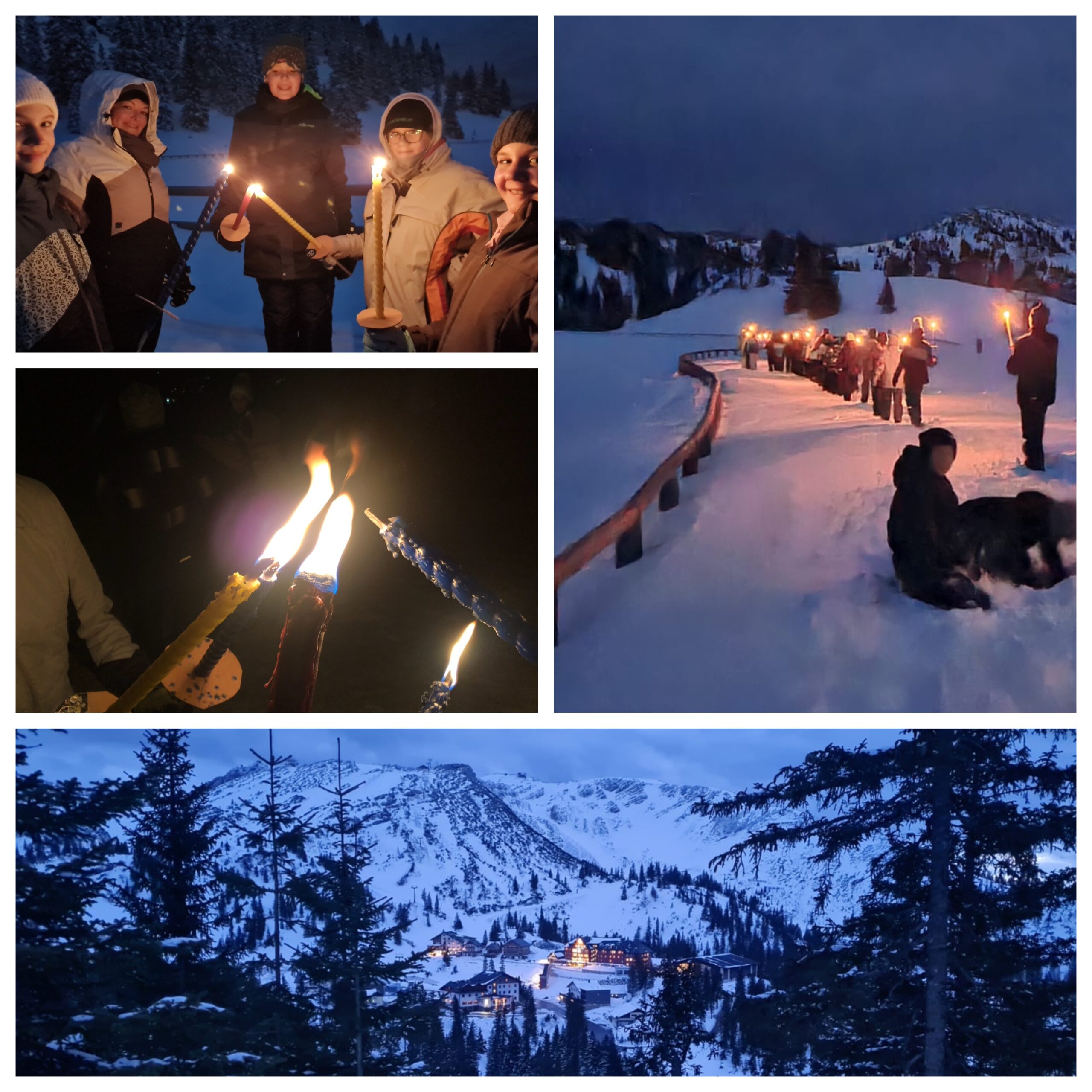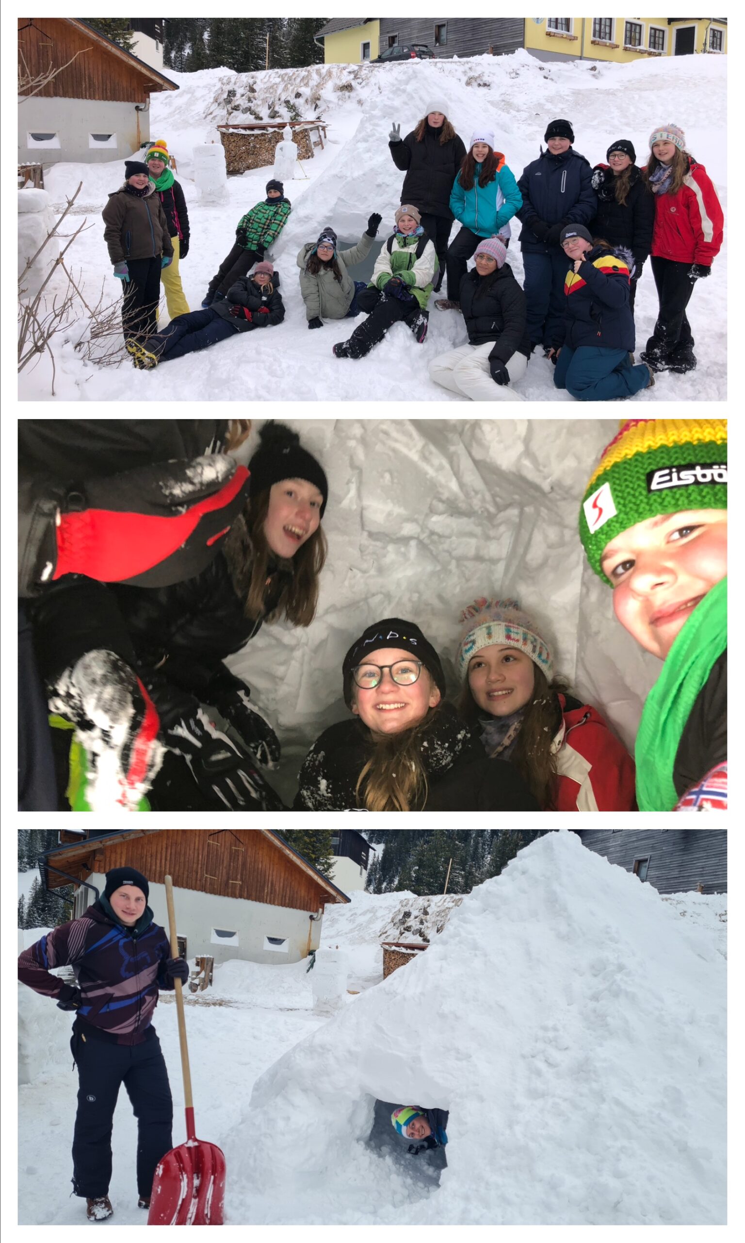 Was für eine Woche! Wettertechnisch stellte diese Wintersportwoche alle Schülerinnen und Schüler der 2. Klassen auf die Probe – Schnee, Regen, Sturm, Eisregen, Wind. Jedoch trotzen wir den Wetterbedingungen und fuhren jeden Tag Ski, bauten Iglus, ließen unserer kreativen Art beim Eisskulpturenschnitzen freien Lauf und stapften bei hohem Schnee mit Fackeln durch den Wald. Was für unvergessliche Erlebnisse!