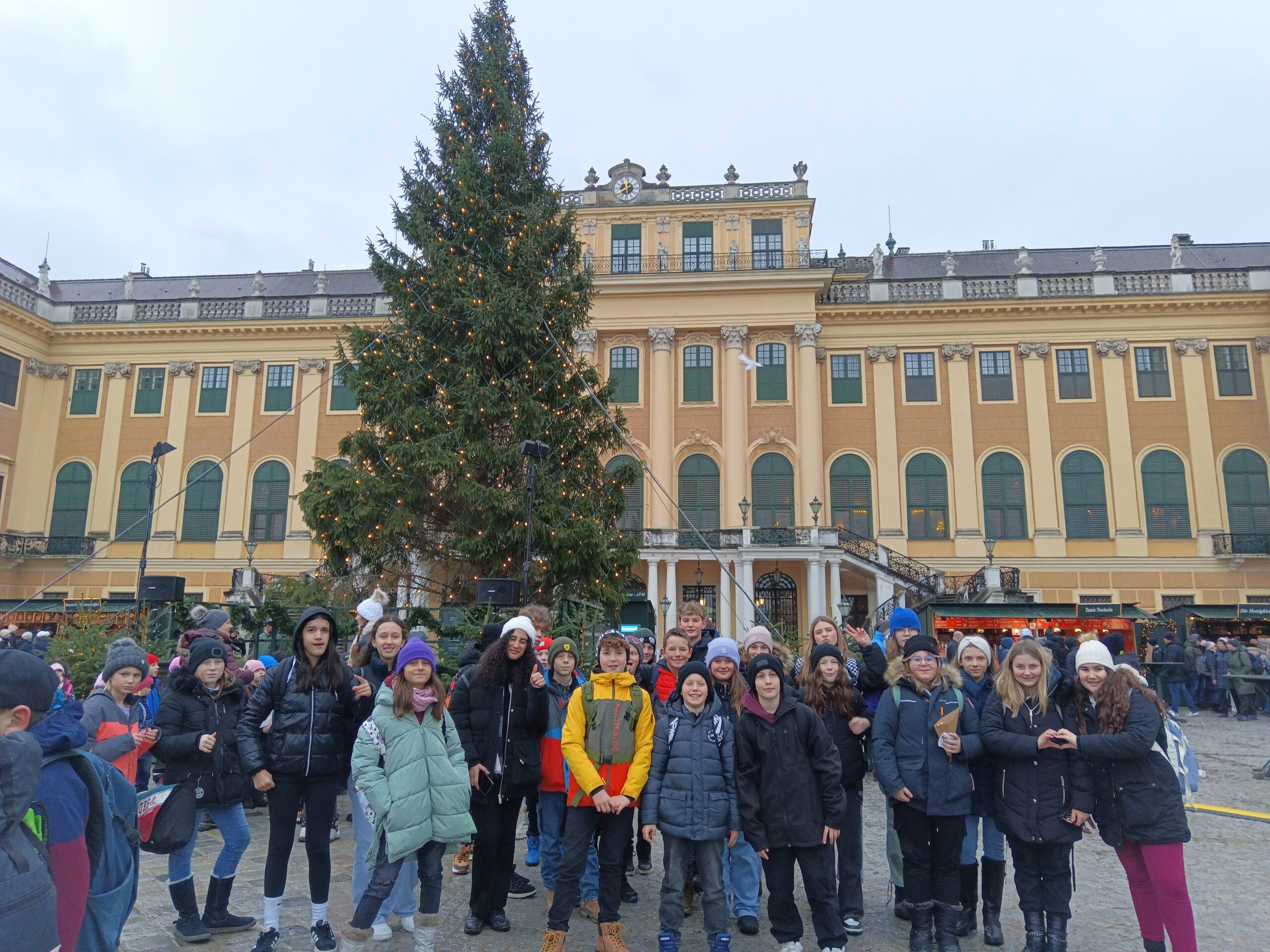 Am Weihnachtsmarkt vor dem Schloss war trotz schlechten Wetters schon reger Betrieb und Zeit zur Stärkung. Danach ging es noch ab in den Tiergarten, wo alle Kinder ihre Lieblingstiere finden und beobachten durften.