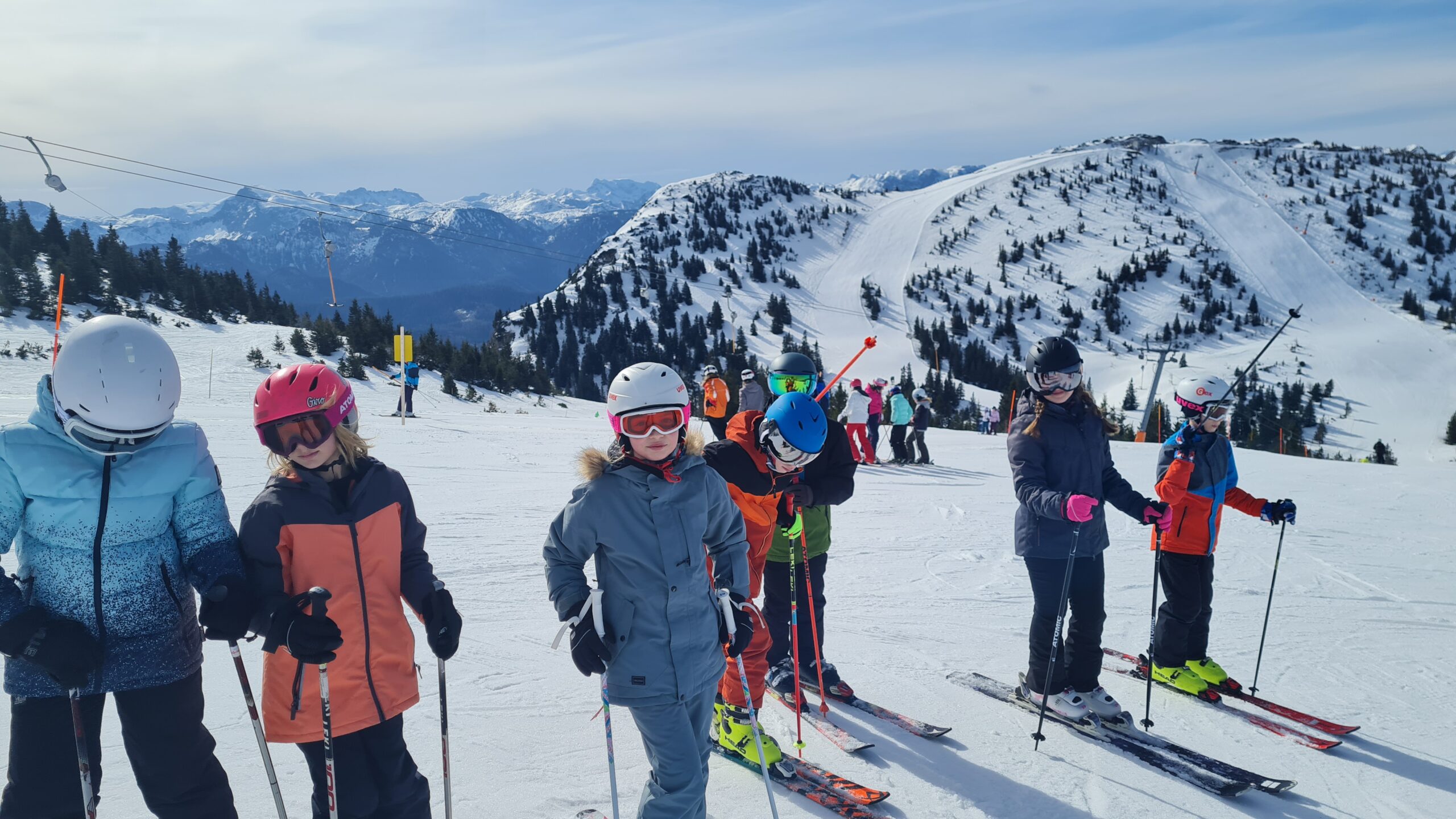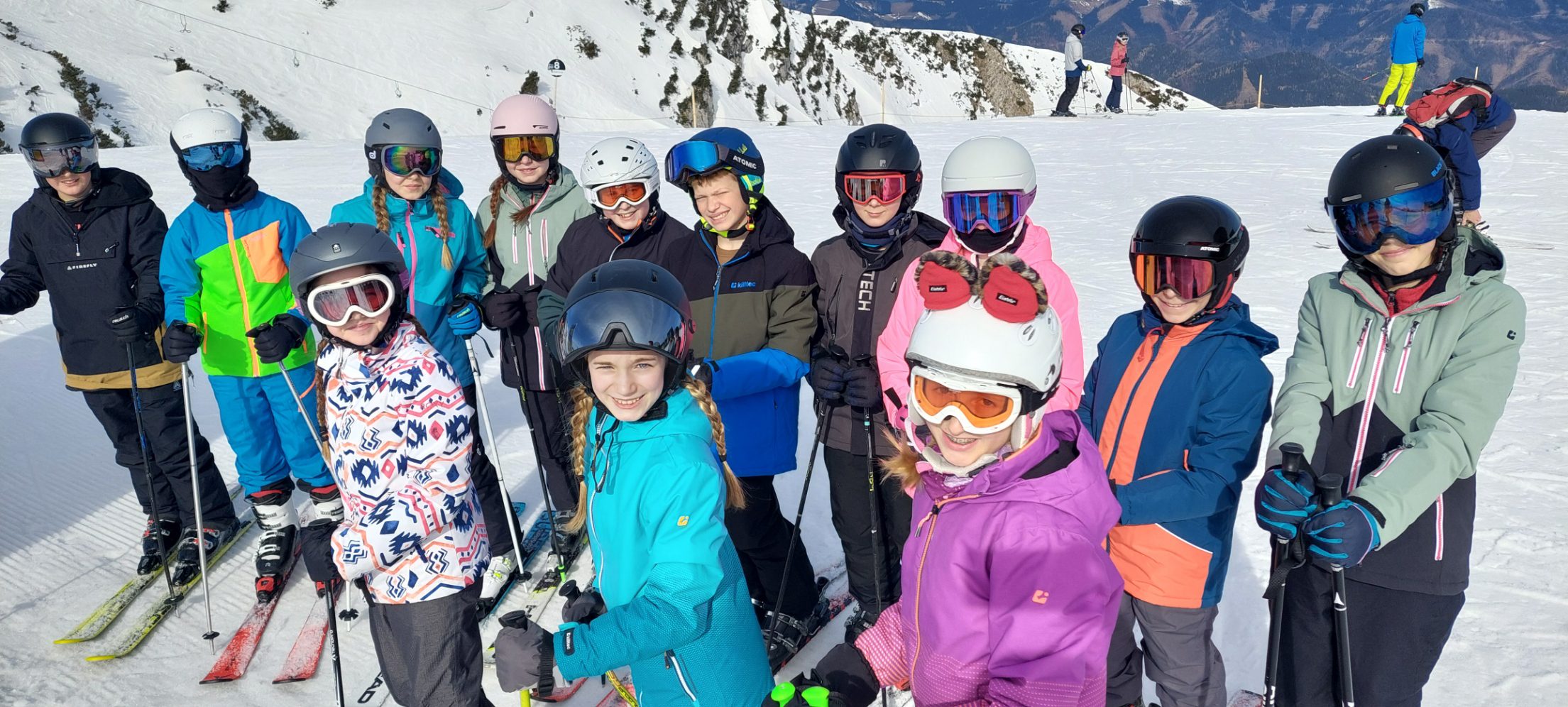 Trotz Startschwierigkeiten haben es dieses Jahr die Zweitklässler geschafft auf ihren ersten Skikurs am Hochkar zu fahren. Von der Anfängerpiste bis hin zu aufregenden Abfahrten lernen sie nicht nur die Grundlagen des Skifahrens, sondern erlebten auch eine unvergessliche Zeit voller Abenteuer und Spaß. Während die Kinder bei Sonnenschein und Nebel die Pisten hinuntersausen, entdeckten sie die Schönheit der winterlichen Landschaft. Sie erlebten die Freiheit des Skifahrens und spürten den Nervenkitzel bei rasenden Abfahrten. Um das Gemeinschaftsgefühl zu stärken, wurde abends gemeinsam gekegelt, gesportelt, gespielt und am letzten Abend wurde noch in der Latschenalm getanzt. Alles in allem ein gelungener Skikurs mit zufriedenen, strahlenden Kinderaugen und heilen Knochen.