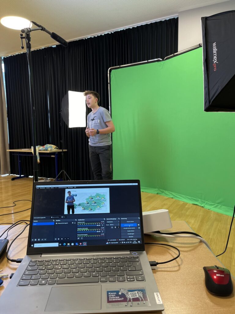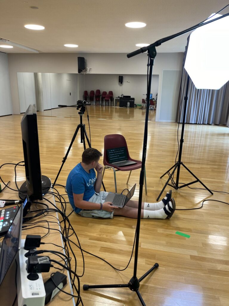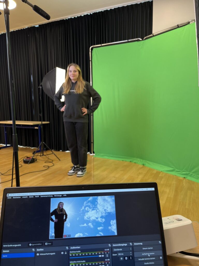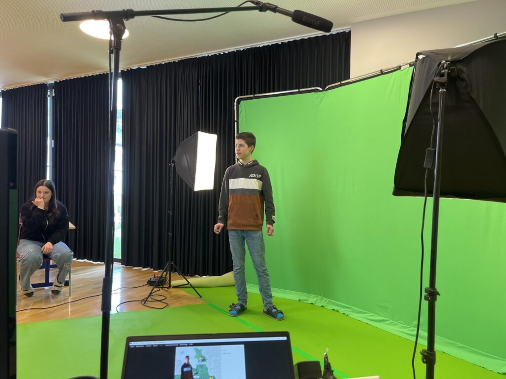 All das kulminierte letztendlich in einer Watchparty, wo sich die gesamte Klasse die einzelnen Beiträge auf großer Leinwand ansehen konnte, was allen viel Freude bereitet hat. Das Video konnten sich die Schülerinnen und Schüler als Erinnerungsstück selbstverständlich mitnehmen. Hier noch ein paar Eindrücke, wie das ganze „Backstage“ ausgesehen hat.