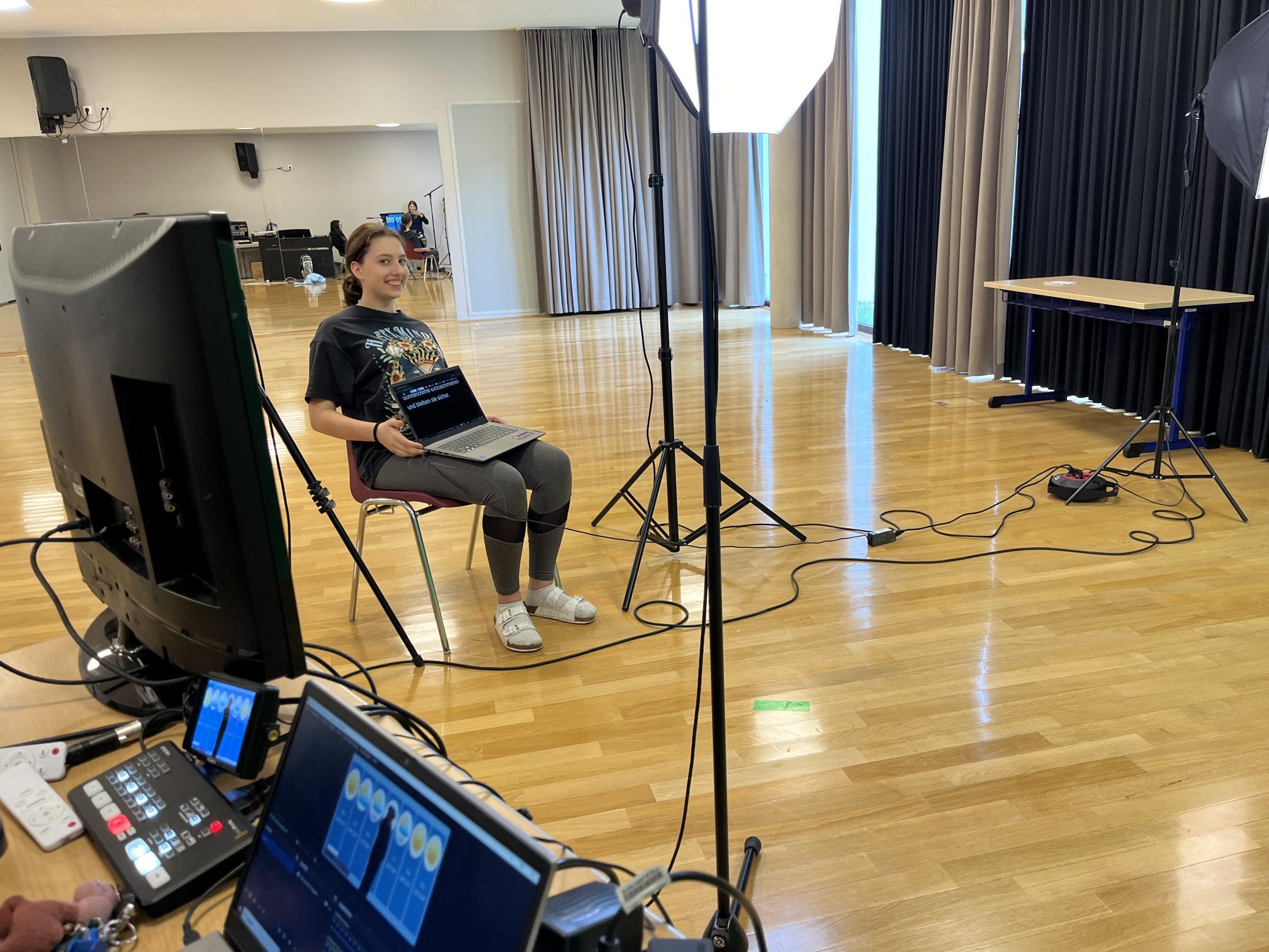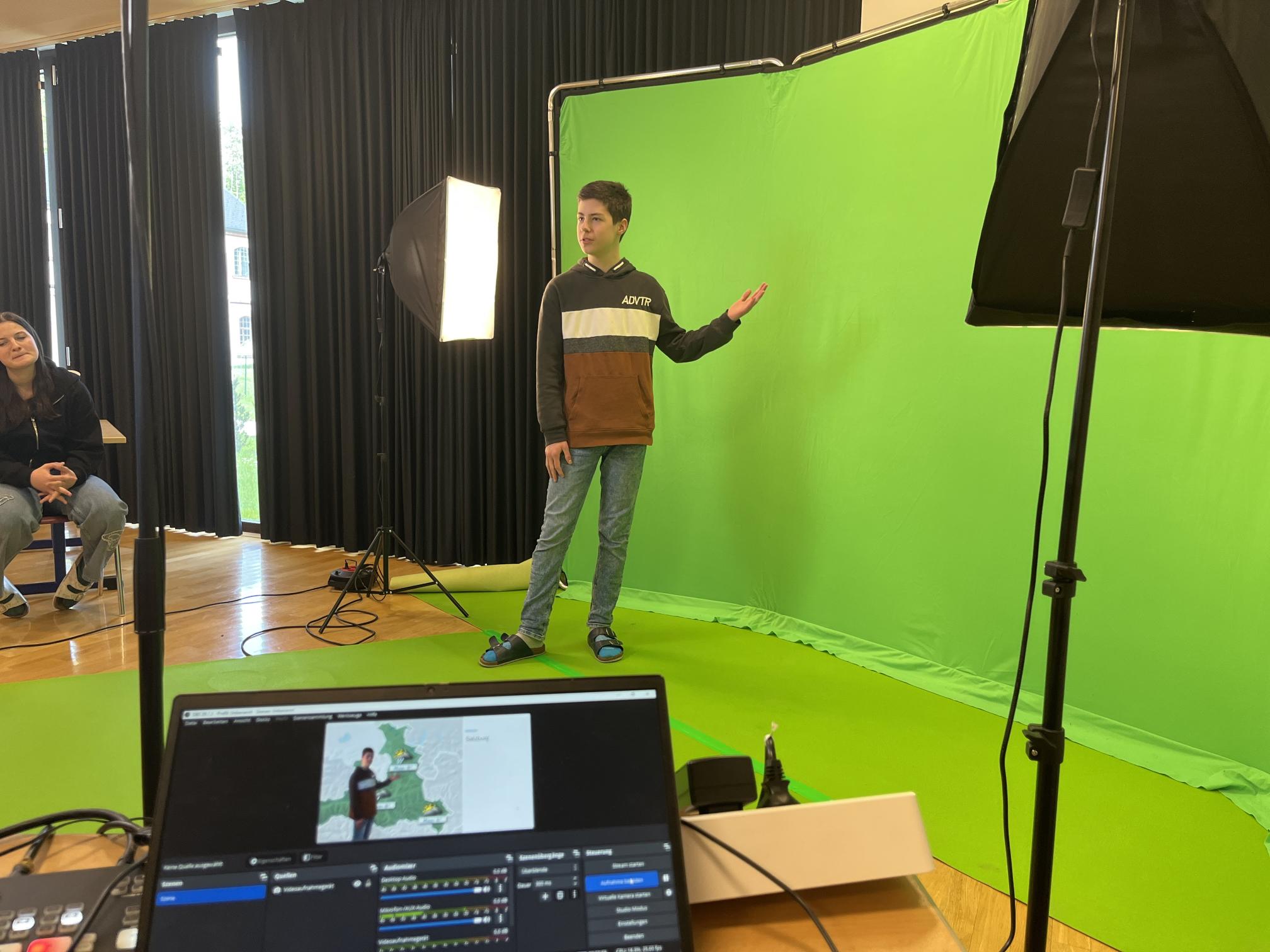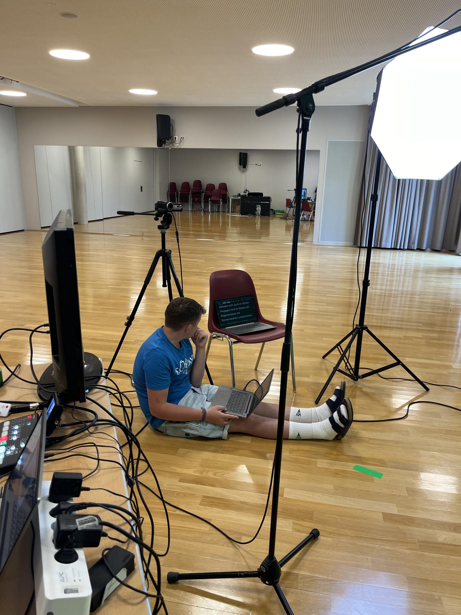 All das kulminierte letztendlich in einer Watchparty, wo sich die gesamte Klasse die einzelnen Beiträge auf großer Leinwand ansehen konnte, was allen viel Freude bereitet hat. Das Video konnten sich die Schülerinnen und Schüler als Erinnerungsstück selbstverständlich mitnehmen. Hier noch ein paar Eindrücke, wie das ganze „Backstage“ ausgesehen hat.
