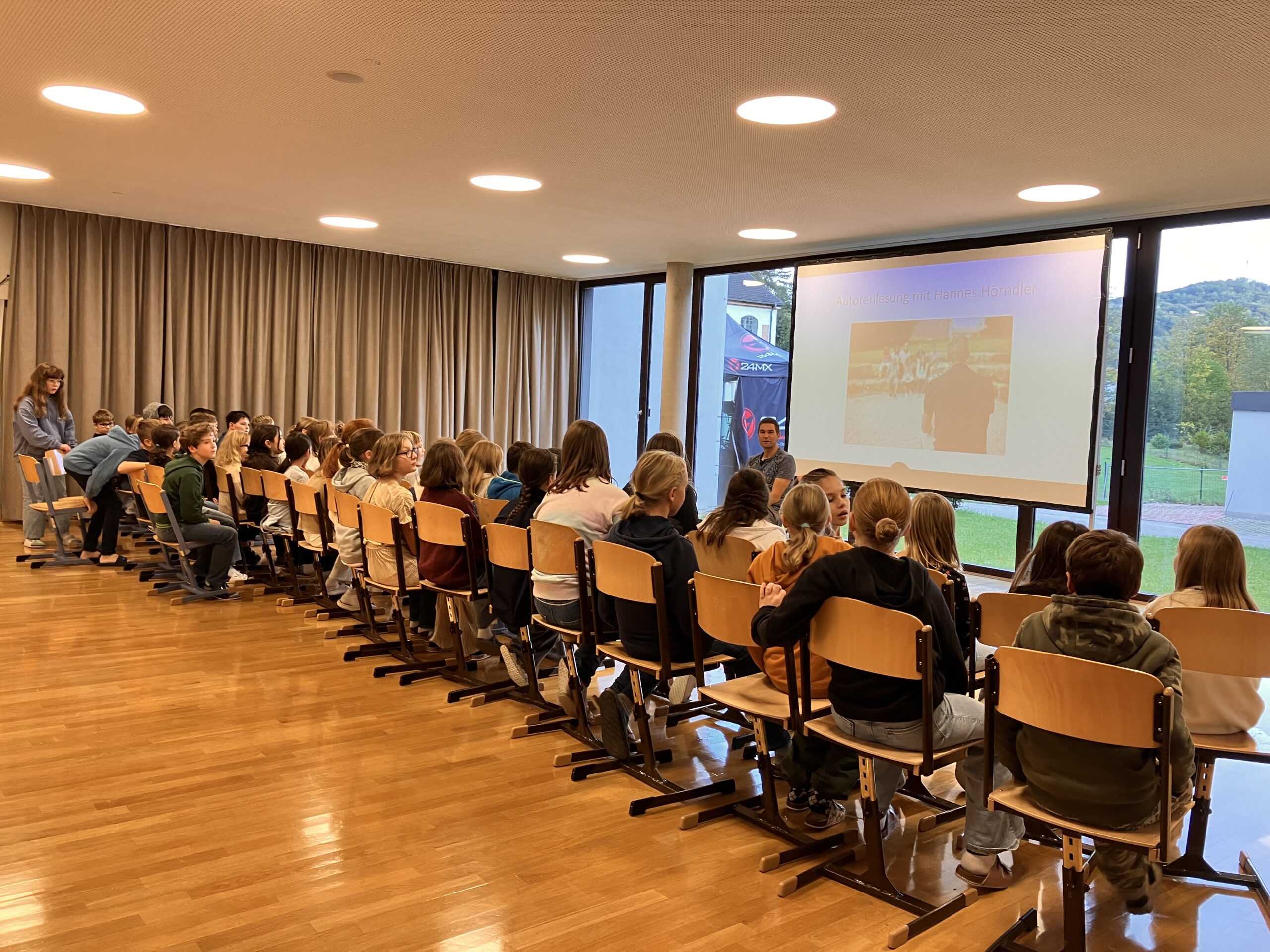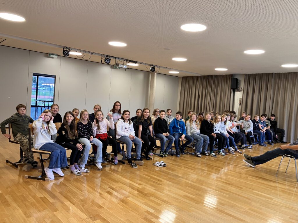 Am 10.10.2024 sind wir an unserer Mittelschule in den Genuss einer Autorenlesung mit dem Autor Hannes Hörndler gekommen. Er hat die SchülerInnen der 1. Und 3. Klassen mit zwei verschiedenen Programmen begeistert, insgesamt sechs Bücher vorgestellt und vor allem nicht „nur“ gelesen, sondern ein interaktives Leseerlebnis mit abschließendem Gewinnspiel veranstaltet.