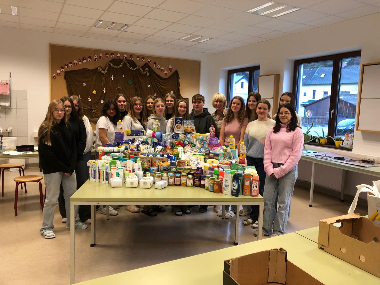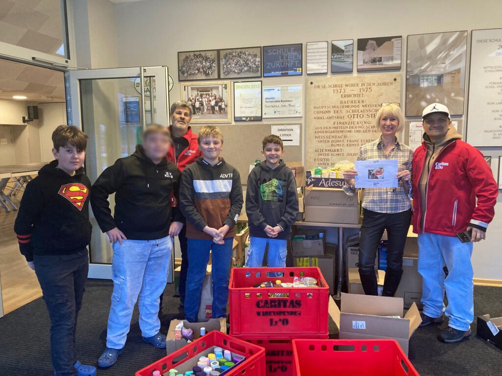 Die Musik-Mittelschule Weissenbach hat an der Aktion teilgenommen und insgesamt 190kg an Lebensmitteln und Hygieneprodukten gesammelt.