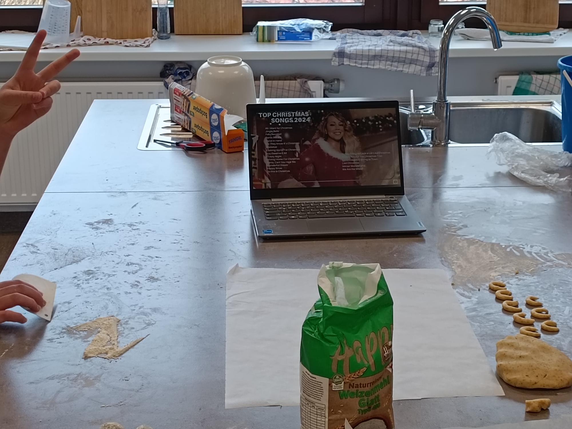 Am 18.12. haben sich die Weihnachtselfen der Klasse 4c in der Küche zusammengefunden um Weihnachtskekse und Co. zu backen. Dabei durfte natürlich die Playlist mit den besten Weihnachtshits nicht fehlen!