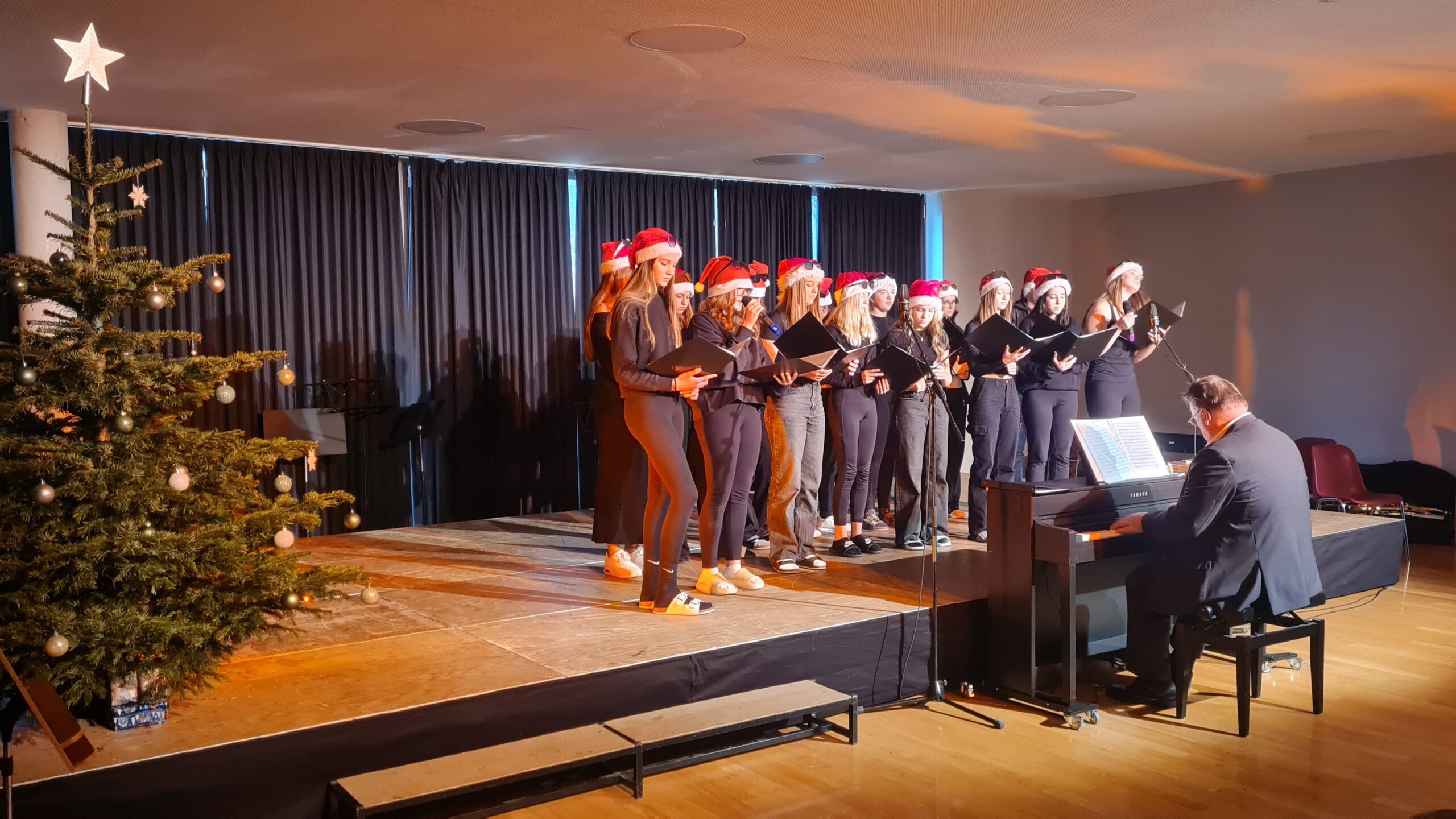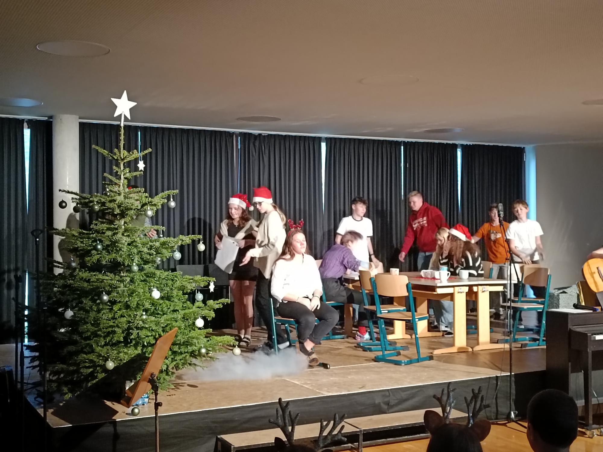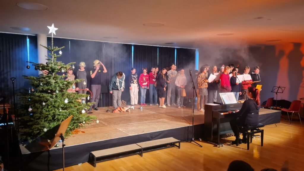 Eine unserer jährlichen Traditionen ist die Weihnachtsmesse sowie die darauffolgende Weihnachtsfeier. Die Messe fand dieses Jahr am 19.12. statt. Der letzte Schultag vor den Ferien, am 20.12., wurde wieder gemeinsam im Festsaal verbracht. Die Weihnachtsfeier wird immer mit verschiedenen Aufführungen der Schülerinnen und Schüler zu einem spaßigen Erlebnis. Von Musik, Gedichten und künstlerischen Performances ist alles dabei.
