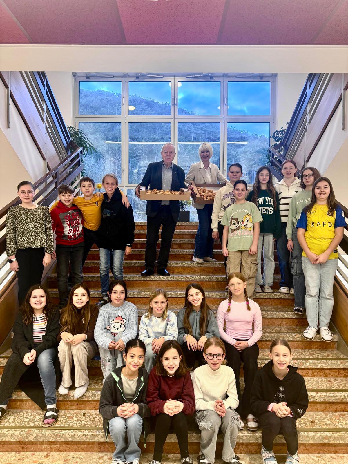 Wir starteten traditionell mit einem Lesefrühstück in die Semesterferien! Neben vielen von zu Hause mitgebrachten Köstlichkeiten gab es für alle Schülerinnen und Schüler, Lehrkräfte und Schulpersonal ein Zuckerkipferl, gesponsert von der Schulgemeinde! Der Schulobmann Johann Miedl half bei der Verteilung im Schulhaus tatkräftig mit.
