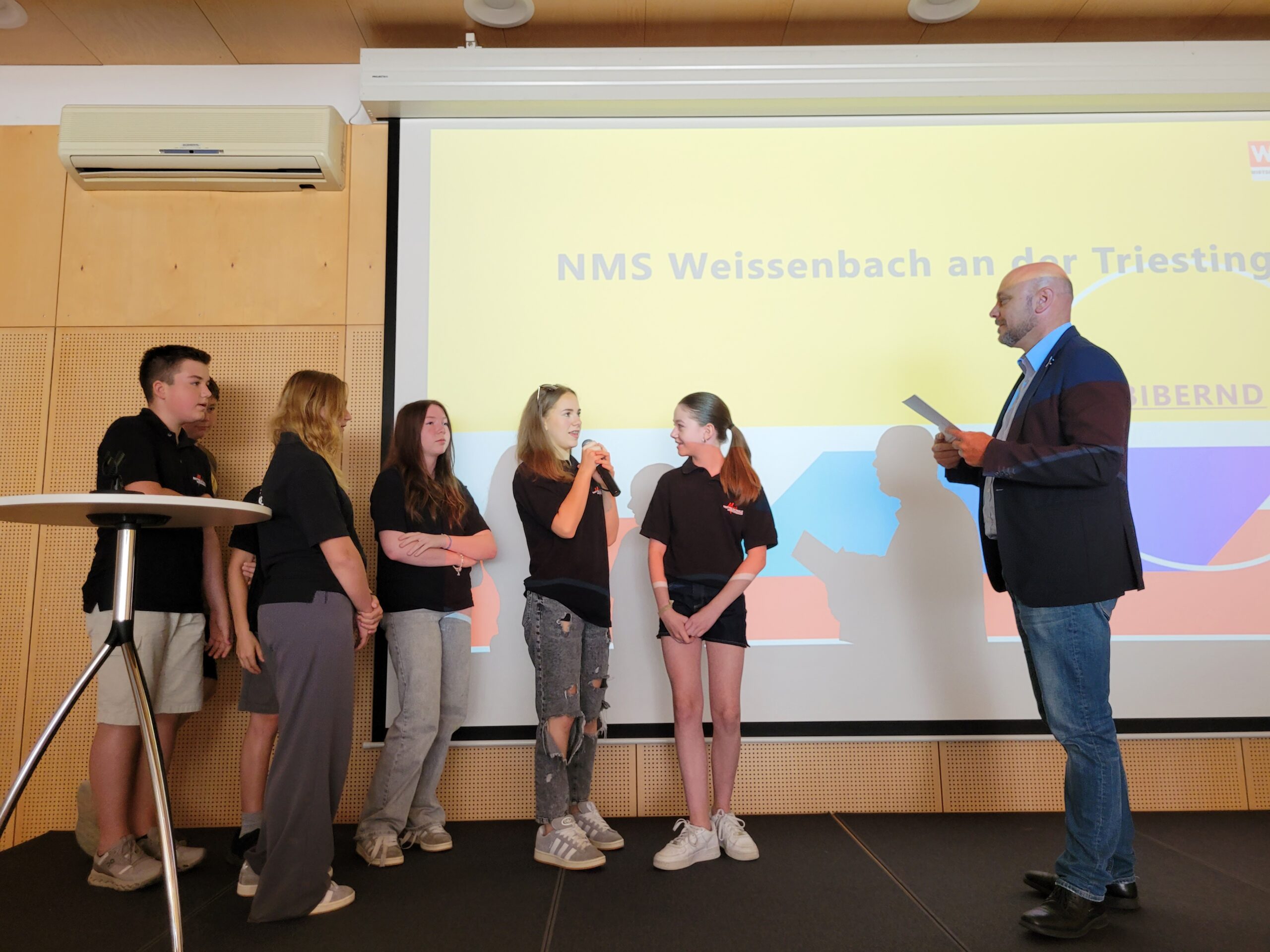Mit dabei waren zwei Junior Basic Companies der Mittelschule Weissenbach und überzeugten mit tollen Geschäftsideen. „EMART“ stellte handgezeichnete Glückwunschkarten und „BIBERND“ Lampen aus Naturmaterialien her. Das Publikum zeigte sich begeistert von der Vielfalt und dem Engagement der jungen Gründerinnen und Gründer.