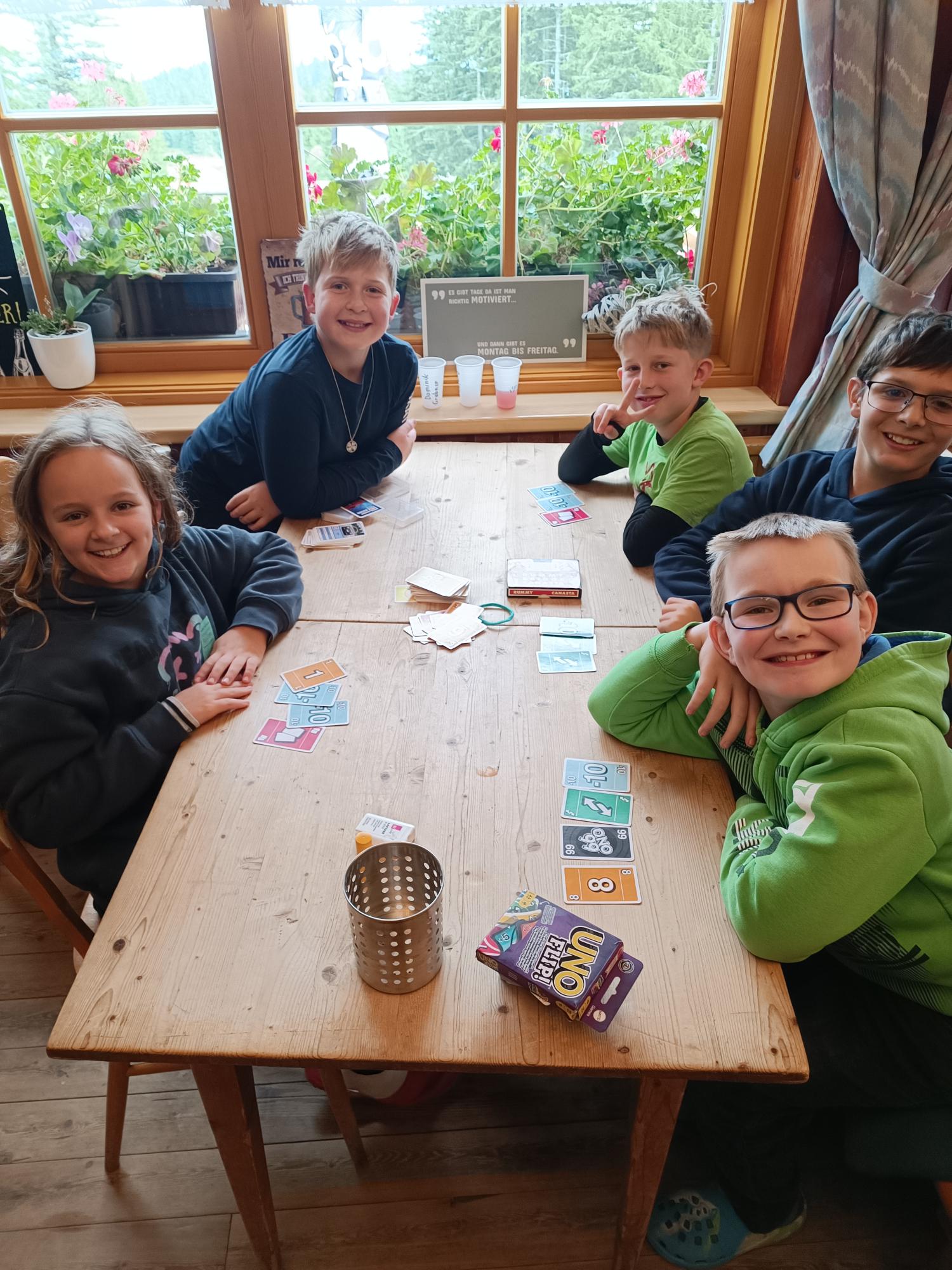 So mussten die Klassen beispielsweise eine Menschenkette bilden um so Sonnenschirme von Punkt A zu Punkt B zu bringen. Weiters gab es auch einige Spiele im Wald, darunter die beliebte Fuchsjagd. Die raffinierten Lehrerinnen und Lehrer haben im dunklen Wald einen Schatz versteckt. Die Schülerinnen und Schüler mussten Teams bilden und sich im dunklen Wald am Lehrerteam vorbeischleichen. Wer erwischt wurde, musste zum Startpunkt zurück und von vorne anfangen. Durch ihre tolle Kooperation haben es die Schülerinnen und Schüler geschafft das Lehrerteam auszutricksen und sich den Schatz zu ergattern.