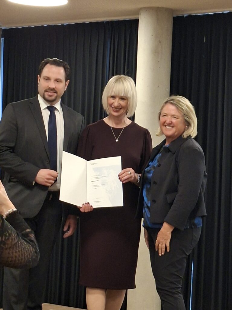 Andrea Sattler darf sich jetzt „Oberschulrätin“ nennen. Das Dekret, ausgestellt durch den Bundespräsidenten, wurde im Rahmen einer Verleihung, die durch die Musikklassen musikalisch gestaltet wurde, vom Leiter der Bildungsregion 5, MMag. Albin Schuller feierlich überreicht. Es gratulierten im Rahmen der Feier die Bürgermeisterin Natascha Partl aus Furth, Bürgermeister Josef Balber aus Altenmarkt, Bürgermeister Gerhard Leutgeb aus Weissenbach, Schulobmann Johann Miedl, Schulqualitätsmanagerin Mag. Gabriele Pollreiß, Personalvertreter Christoph Kampichler sowie Familie und Freunde.