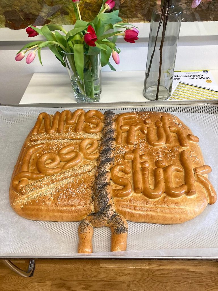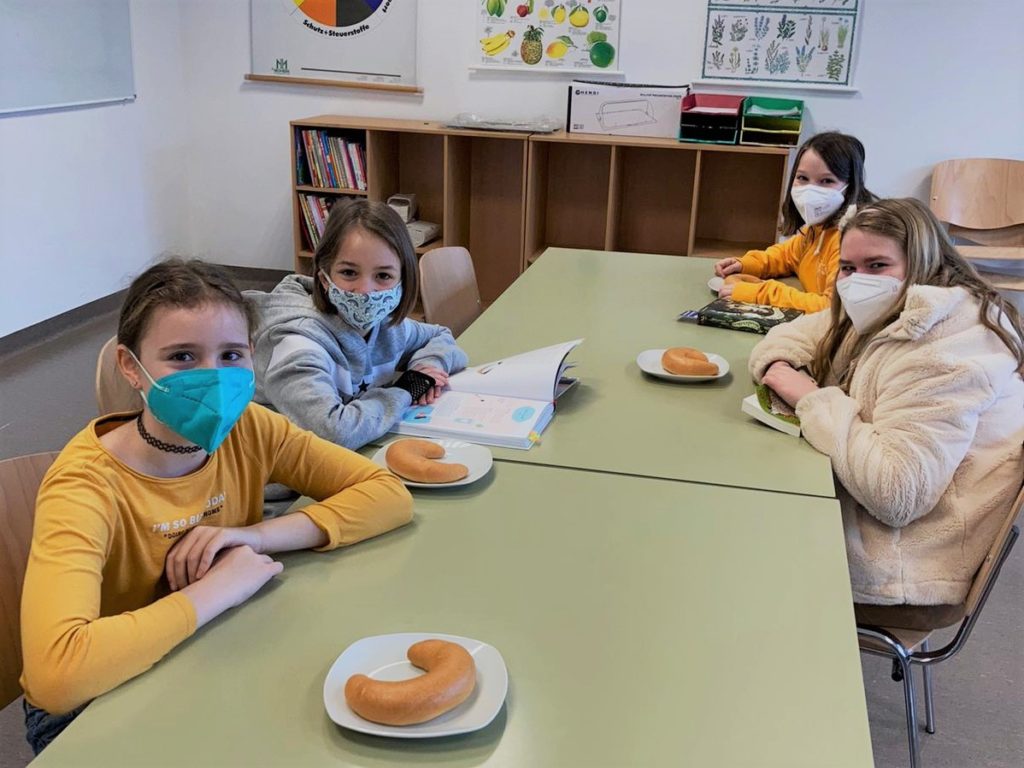 Durch den Schichtbetrieb gab es dieses Jahr gleich an zwei Tagen wohlschmeckende Kipferl und knuspriges Gebäck von der Bäckerei Singraber aus Kaumberg. Danke an die Gemeinde Weissenbach, die uns die Kipferl finanziert hat! Neben dem Frühstücken kam das Lesen nicht zu kurz.
