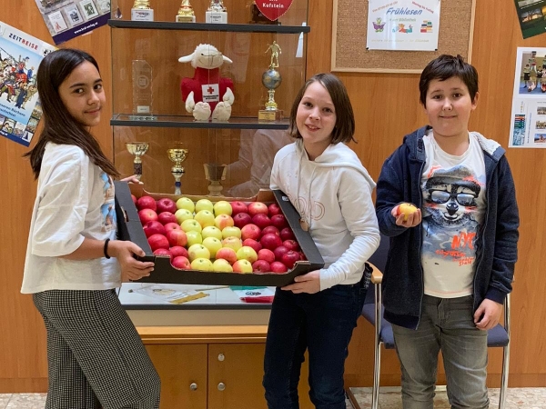 Alle Schüler/innen, Lehrer/innen und das Schulpersonal bekamen am „Tag des Apfels“ je einen saftigen Apfel von der Gemeinde spendiert. Der gesunde Snack hat allen gut geschmeckt!