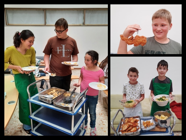 Das Projektthema war Österreich. Die Kinder waren top motiviert und arbeiteten an Präsentationen zum Thema. Die Kompetenzen Sprechen, Lesen und Schreiben wurden mit individuellen Aufgaben gefördert. Die beste Stimmung erzielten die 2 Kochtage (typisch österreichische Küche), an denen die Schüler/innen der NMS für alle Anwesenden Kaiserscharrn, Apfelmus, Küsbiscremesuppe (aus eigenem Anbau) oder Schnitzel mit Erdäpfelsalat und Pfirsichstrudel zubereiteten. Der Höhepunkt der Sommerschule war die Schlusspräsentation der Teilnehmer/innen, bei der die Schüler/innen voll Stolz die Resultate ihrer Arbeit bravourös präsentierten. Wir danken allen Mitwirkenden für ihren Einsatz und beglückwünschen die Kinder für ihre Lernfortschritte!