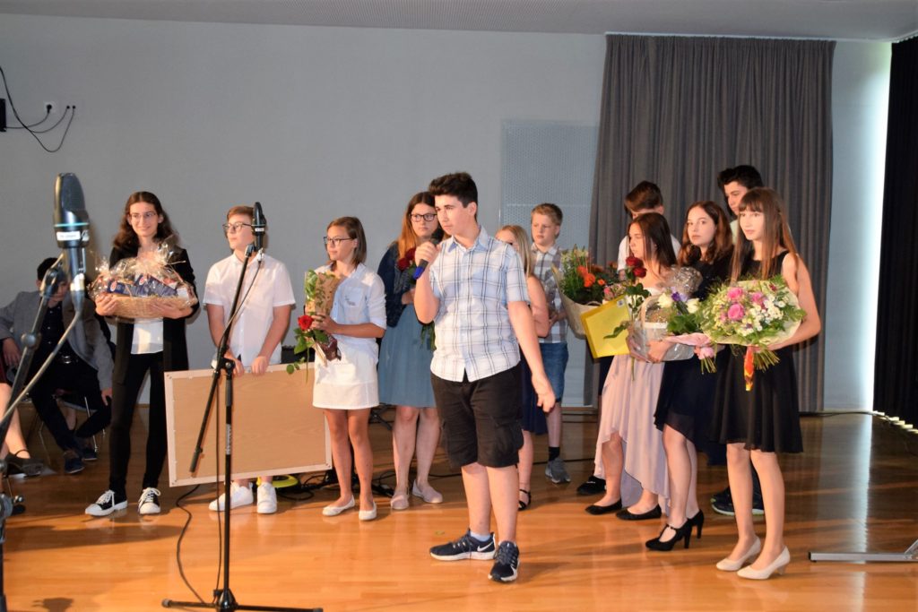 Die Abschlussfeier der 4. Klassen lief heuer unter dem Motto „klein aber fein“. In redzuiertem Rahmen konnten aber doch alle Richtlinien eingehalten werden und die Schülerinnen und Schüler bewiesen, dass sie auch in Krisenzeiten feiern können. Die Musikklasse zeigte einige Stücke aus dem heuer leider abgesagten Musical „Peter Pan“ und mit vielen schönen Worten, gesprochen wie gesungen, verabschiedeten sich die Kinder der drei Abschlussklassen von uns.