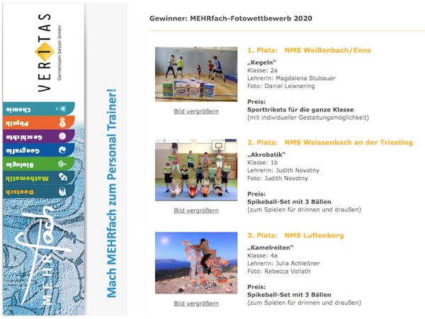 Der Schulbuchverlag „Veritas“ organisiert jährlich einen Fotowettbewerb, heuer zu der Buchreihe „MEHRfach“.